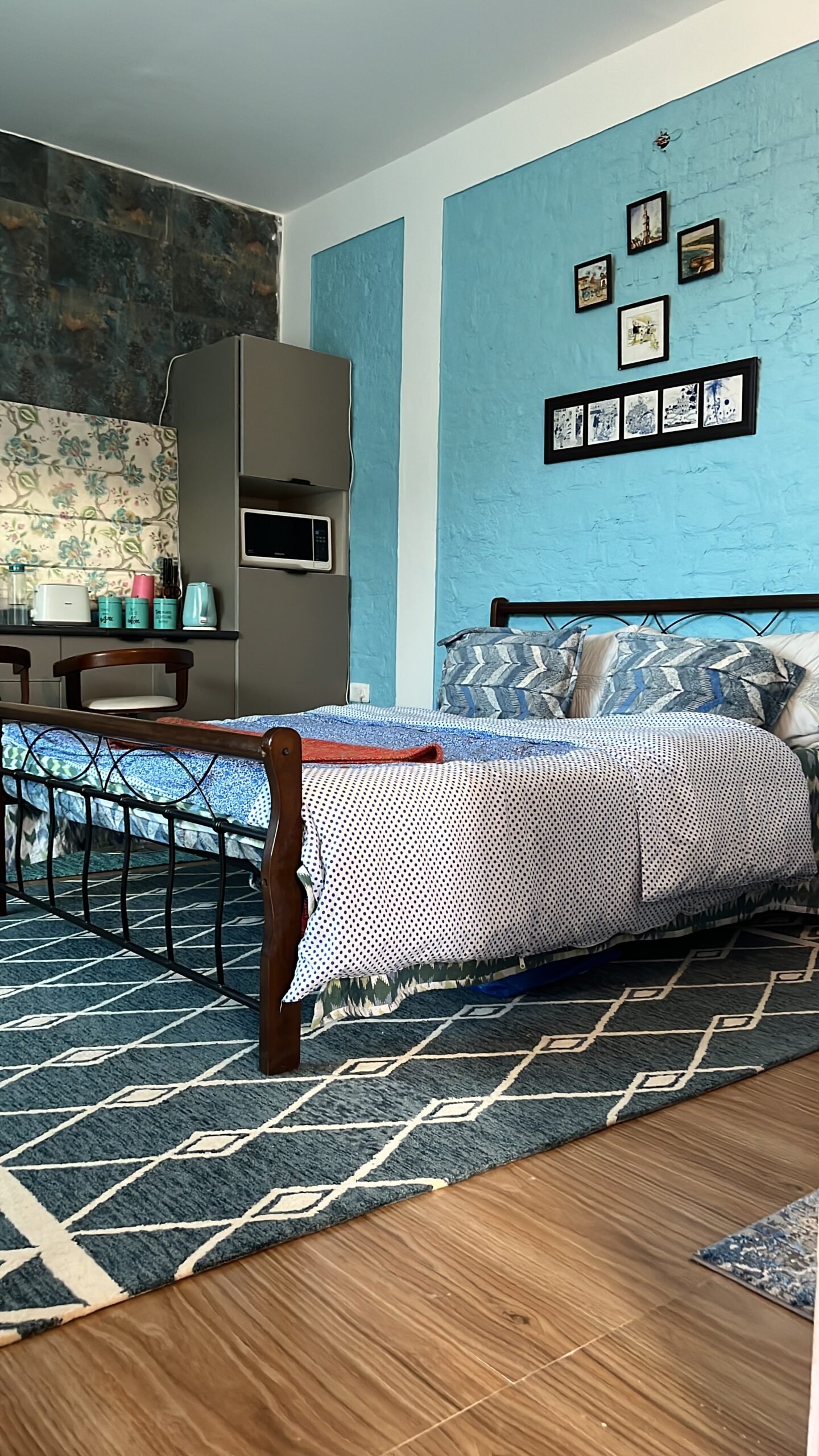 As you enter the cottage, you’ll be struck by its vibrant and colorful decor. Each room has its own character with names based on some flowers and plants found indigenously in Uttarakhand to create a unique and harmonious ambiance. From the warm yellows of a double bedroom to the soothing greens of the family room, every corner of the cottage exudes warmth and character. And if you’re traveling with your pet, you’ll be pleased to know that the cottage has lots of spaces outside where your furry friend can play and relax.